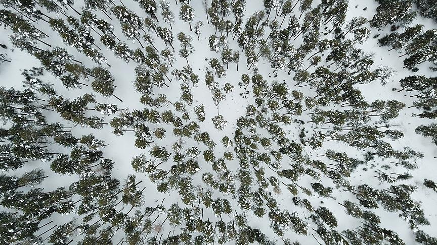 Kış mevsiminin uzun ve çetin geçtiği Kars'ın Sarıkamış ilçesinde, kar yağışıyla beyaza bürünen sarıçam ormanları görsel şölen sunuyor.