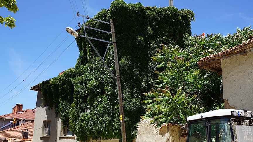Kütahya'nın Tavşanlı ilçesine bağlı Aliköy'de, 30 yılda tamamını sardığı 3 katlı eve ayrı bir güzellik katan sarmaşık, klima görevi de yaparak yaz aylarında evin serin olmasını sağlıyor.