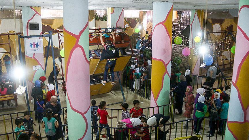 Suriye'nin başkenti Şam'ın kırsalındaki Doğu Guta bölgesinde yer altına inşa edilen oyun parkı, savaşın mağdur ettiği çocuklara kısa süreliğine de olsa güven içinde oynayabilecekleri bir ortam sunmayı amaçlıyor.
