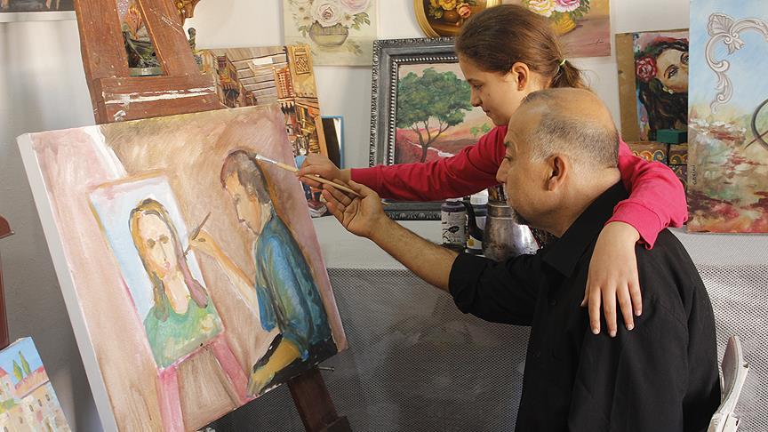 Suriye'nin Halep kentindeki çatışmaların ve bombardımanın yoğunlaşması üzerine 3 yıl önce ülkesini terk eden 55 yaşındaki ressam İmad Saud Ganaimi, Gaziantep'te atölyeye çevirdiği evinde özlemini duyduğu ülkesini ve savaşın acılarını tuvallerine yansıtıyor.