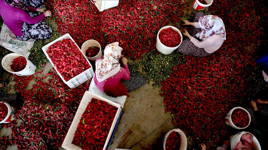 Ülkelerindeki iç savaş nedeniyle yaklaşık 5 yıl önce Suriye'nin İdlip kentinden kaçarak Türkiye'nin önemli biber üretim merkezlerinden Gaziantep'in İslahiye ilçesine yerleşen Suriyeliler, yemeklere lezzet veren acı pul biberin tarladan sofraya yolculuğunda emek harcıyor.