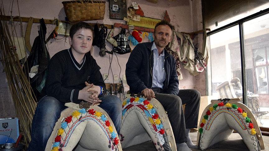 "Gelişen teknolojiyle köylerde 'pat pat' diye tabir edilen tarım araçları çoğalmaya başladı. Her gün yeni model pat-patlar piyasaya çıkınca yük taşımak için tarlalarda katır ve eşeklere de ihtiyaç kalmadı. Yaklaşık 7-8 yıldır ben de oğlumla kendimize ait atölyemizde bu işi hobi olarak yapmaya başladık. Arada sırada gelen özel talepler doğrultusunda semer yapmaya çalışıyorum."