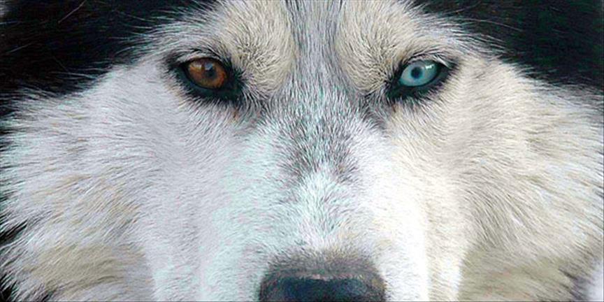 Van Gürpınar'da bir dinlenme tesisinde bulunan Van kedisi gibi bir gözü mavi diğer gözü sarı olan Sibirya Kurdu görenlerin ilgisini çekiyor.