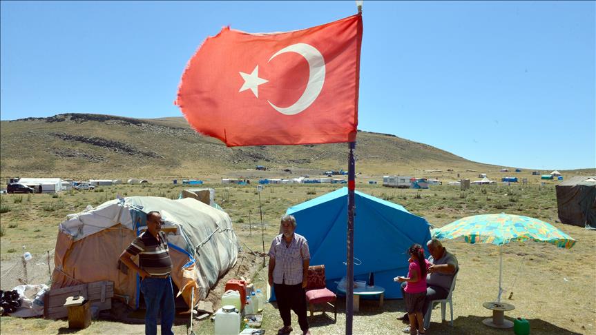Mevsim normallerinin üzerinde seyreden hava sıcaklıklarından bunalan vatandaşlar, Erciyes Dağı'nın eteklerindeki yaylaya çadır kurup serin havanın tadını çıkarıyor.