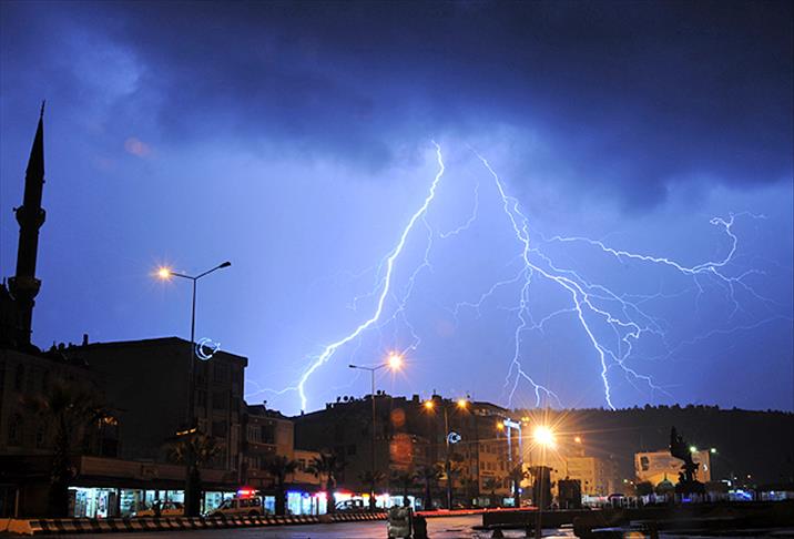 Çanakkale'nın Eceabat ilçesinde etkili olan yağışlı hava sırasında beliren şimşekler, Çanakkale Boğazı ile ilçeyi aydınlattı.