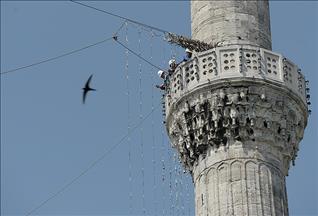 Özellikle ramazan ayında camilerin iki minaresi arasına asılan ışıklı yazı olan mahya sanatının temsilcisi Kahraman Yıldız, mesleğini geleceğe taşımak için çalışmalarını sürdürüyor.