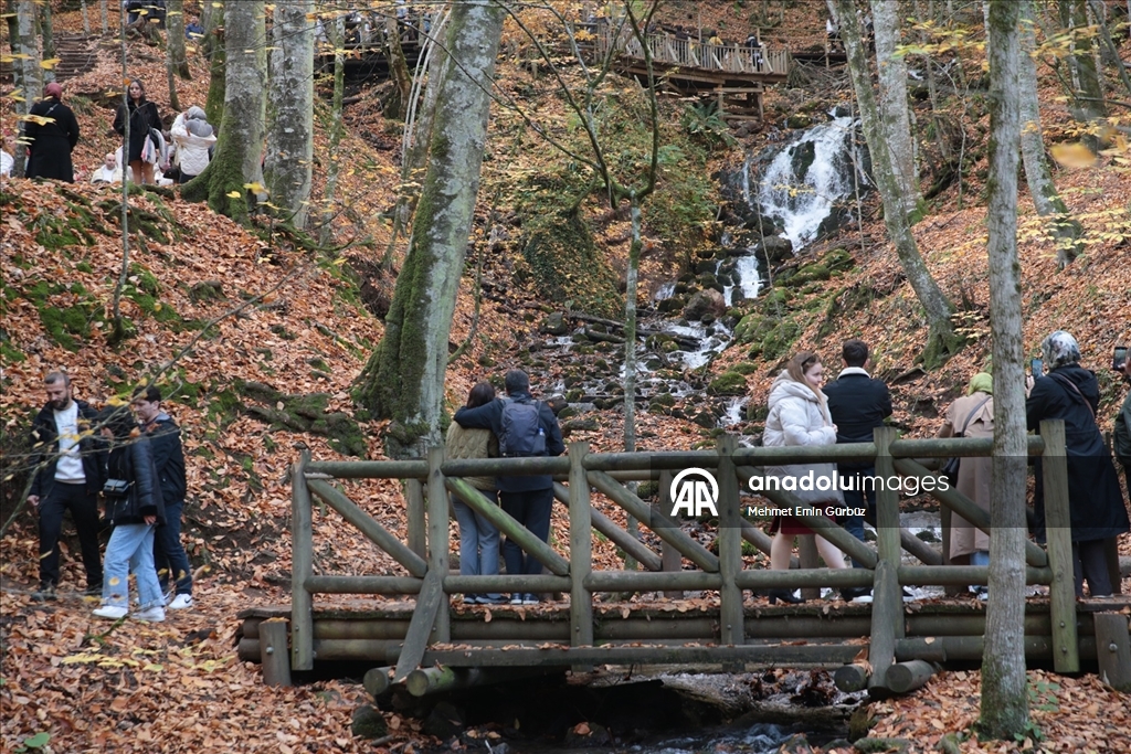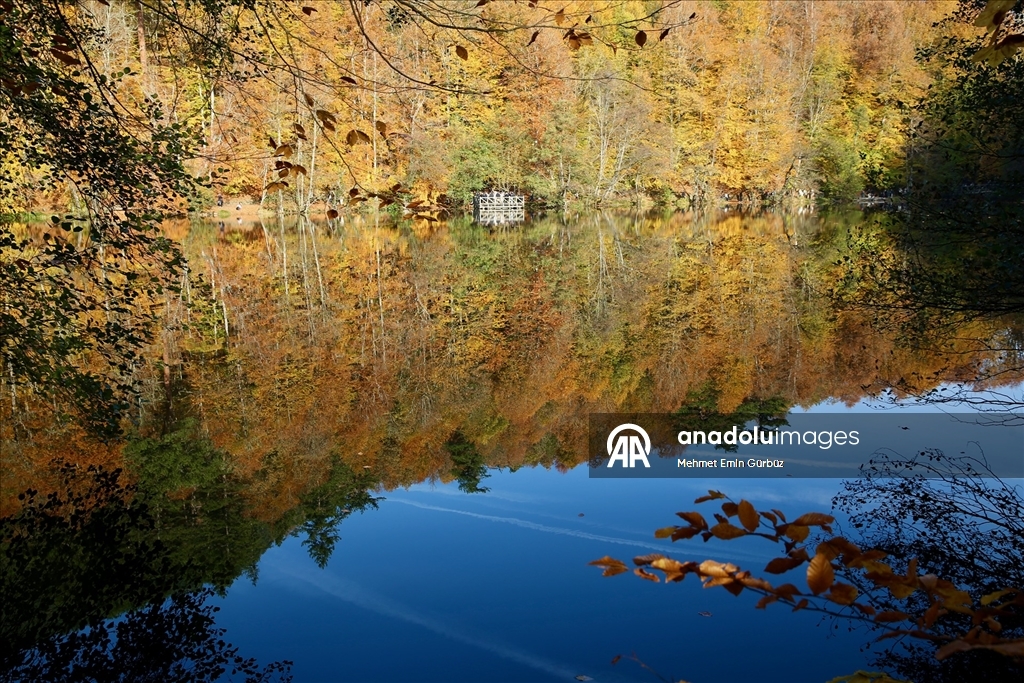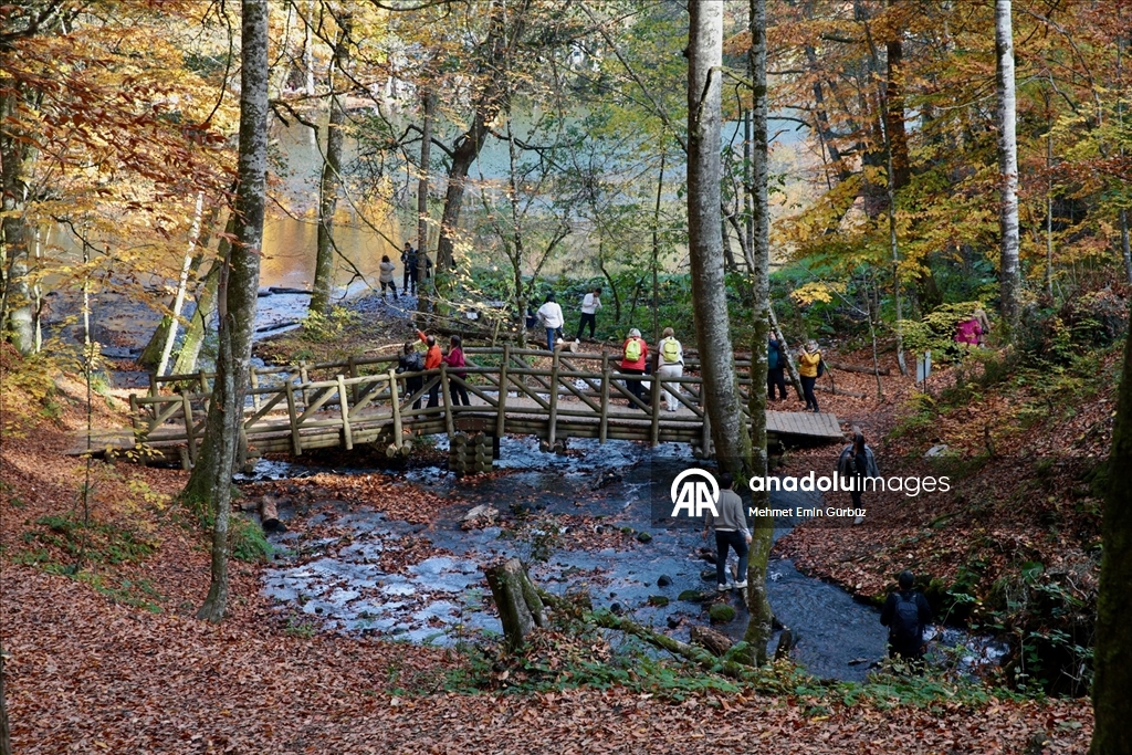 Sonbahar renklerine bürünen "orman denizi" Yedigöller'de ziyaretçi yoğunluğu