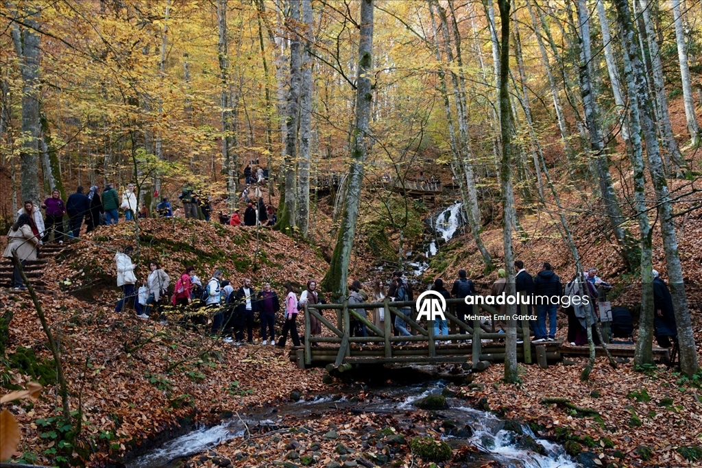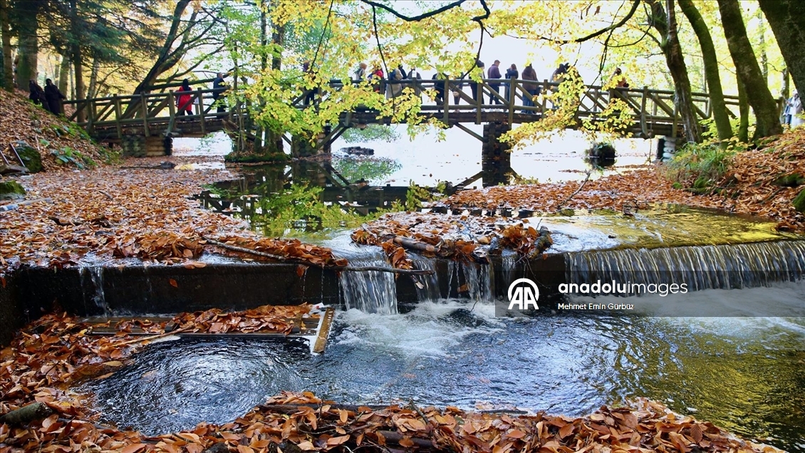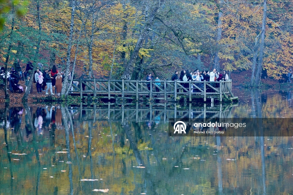 Sonbaharda yeşil, sarı, kahverengi ve kızılın tonlarıyla renklenen Yedigöller Milli Parkı, okullara verilen ara tatilde doğaseverlerin akınına uğruyor.