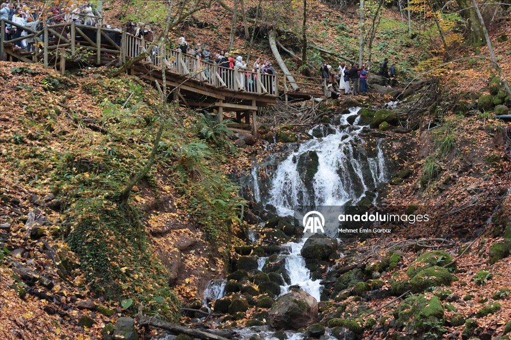 Milli parkın simgelerinden Nazlıgöl Şelalesi de ağaçlardan dökülen farklı renklerdeki yapraklarla etkileyici bir manzara oluşturuyor.