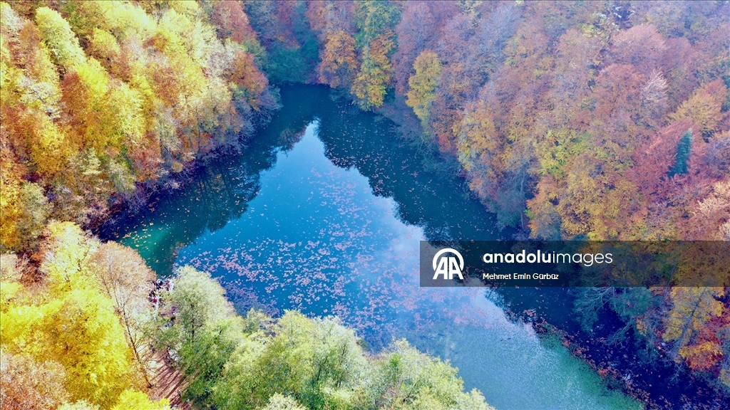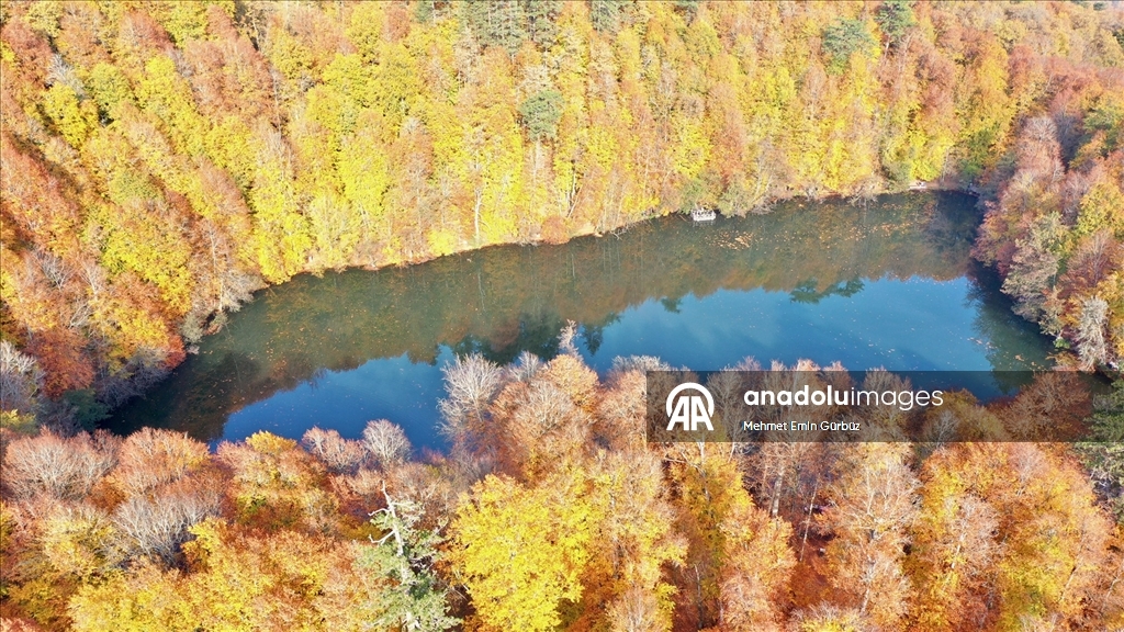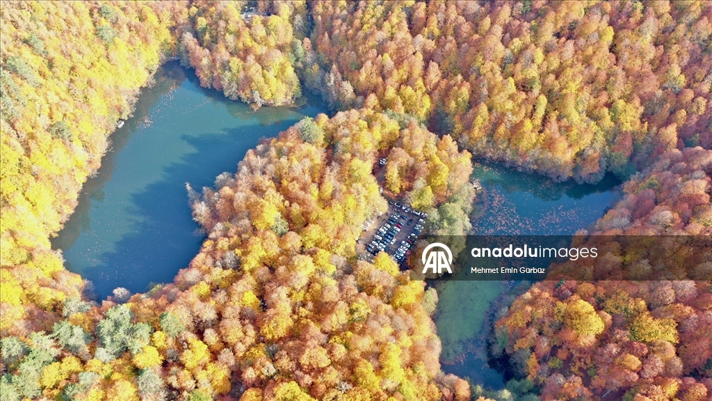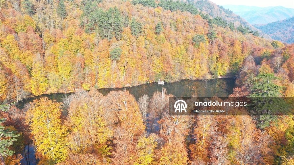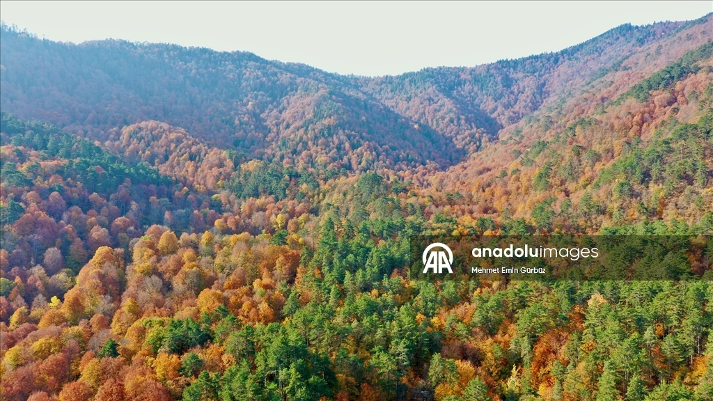 Bu arada, sonbahar renklerinin bölgedeki bitki örtüsüne hakim olmasıyla ortaya çıkan manzara, havadan da görüntülendi.