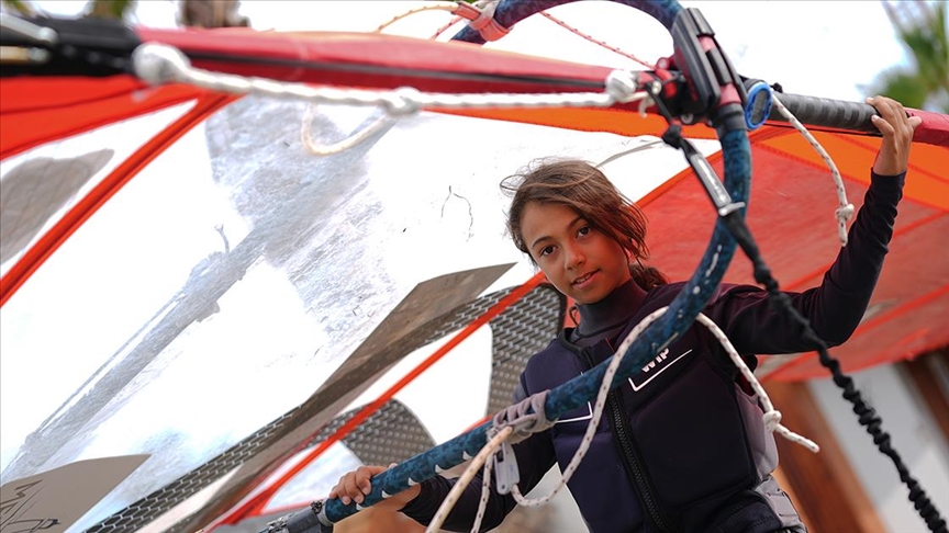 İzmir'de rüzgar sörfüne 2 yıl önce başlayan 12 yaşındaki Poyraz Yetimler, kısa sürede uluslararası organizasyonlarda önemli başarılar elde etti.