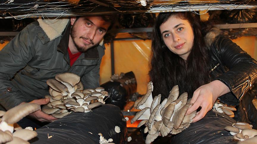 Üretim ve pazarlama kolaylığıyla dikkati çeken istiridye mantarı yetiştirmek üzere sosyal medya üzerinden iletişime geçen 2 genç, kurdukları serada ilk hasadı gerçekleştirdi.