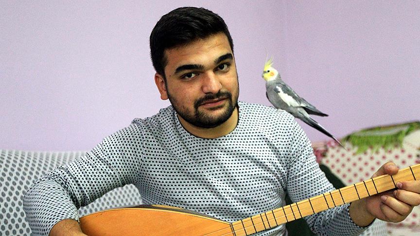 Düğünlerde saz çalarak ailesine destek olan Mehmet Şimşek, AA muhabirine, 3 aylıkken aldıkları papağana "Ziya" adını verdiklerini söyledi.