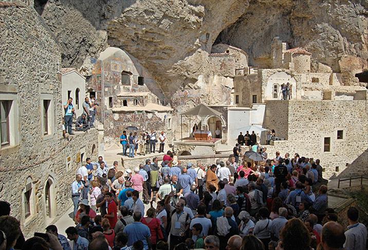 Trabzon'un Maçka ilçesindeki tarihi Sümela Manastırı'nda Hristiyan Ortodokslarca yapılan ayin saat 10.30 itibarıyla başladı.