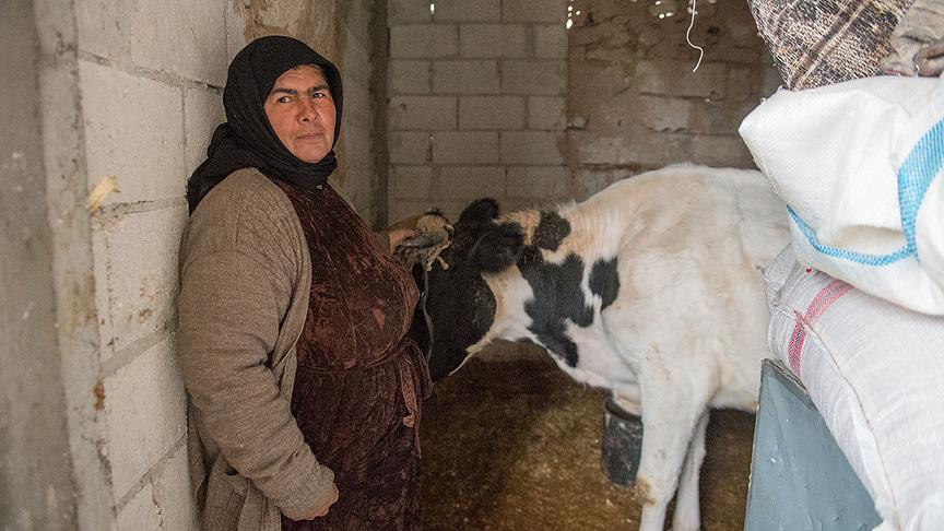 "Burada biz 8 kişiyiz, eşim, kızlarım ve dul olan kızımın çocukları var. Büyük oğullarım önceden gitmişti biri Türkiye'de diğeri ise Katar'da, 5 yıldır onları görmüyorum. Küçük oğlum Hüseyin ise bize ve hayvanlara bakmak için gitmedi. Evimizin göz bebeğiydi, 4 ay önce Cerablus'a gelirken, koyunlarla mayına basarak öldü. Önceden de DEAŞ onu canlı bomba yapmak istemiş, güçlükle kurtarmıştık. Şimdi onun çok sevdiği ve yanında ayırmadığı ineğini besliyorum. İhtiyacımız olmasına rağmen satmaya kıyamadım, soğuk hava nedeniyle evin bir köşesinde ona bakıyorum."