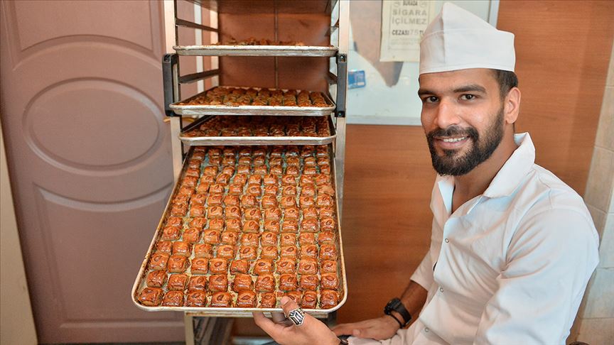 El Azzavi, AA muhabirine, Suriye’de bilgisayar mühendisliği okurken babasına ait işletmede de pasta ve çörek yaptığını söyledi.
