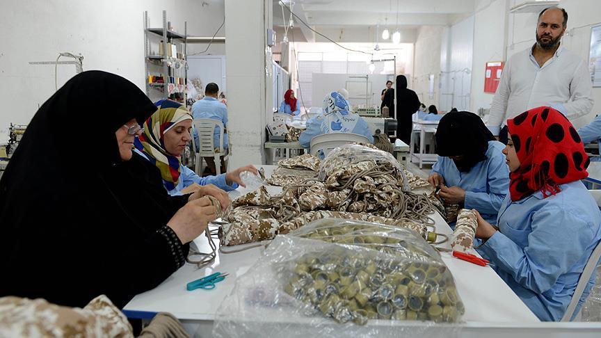Kilis'te kurulan konfeksiyon atölyesinde çalışan 30 Suriyeli kadın, ürettikleri ürünlerden elde edilen gelirle hayata tutunuyor.