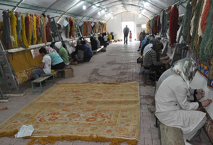 Adıyaman Valiliğinin açtığı Halk Eğitim Merkezi koordinesindeki kursta, haftanın 7 günü Suriyeli kadınlara halı dokuma eğitimi veriliyor.