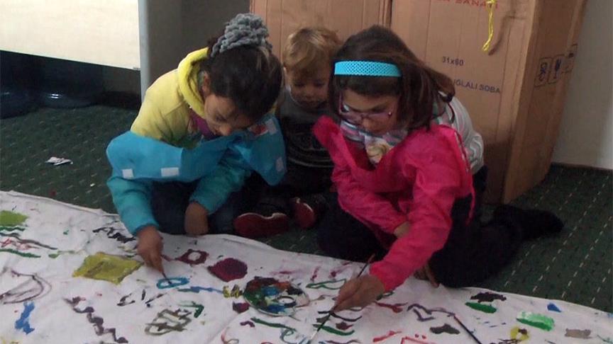 Hatay'ın Reyhanlı ilçesinde yetimhanede kalan Suriyeli çocuklar, üniversite öğrencilerinin kurduğu "Ufak Bir Tebessüm Atölyesi"nde eğlenceli vakit geçiriyor.