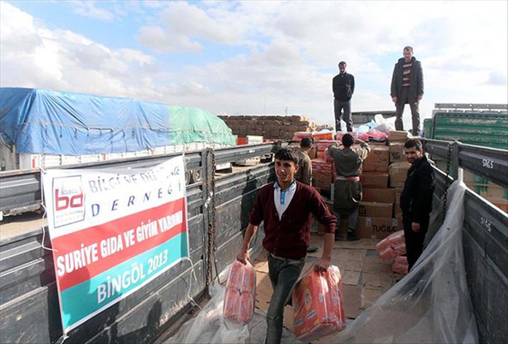 Edinilen bilgiye göre, Özgür-Der ve Bilgi ve Düşünce Derneği tarafından Bingöl'de toplanan 23 ton kuru gıda, un, battaniye ve giyecek yardımı Akçakale sınır kapısı üzerinden Suriye'ye Kürtlerin yoğun olarak yaşadığı Telabyat, Rasul Ayn, Afrin, Kamışlı ve Haseke bölgelerine ulaştırılmak üzere, Ahraruş Şam Doğu bölgesi lojistik sorumlusu Ebu Yahya'ya teslim edildi.