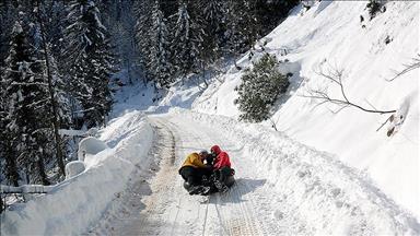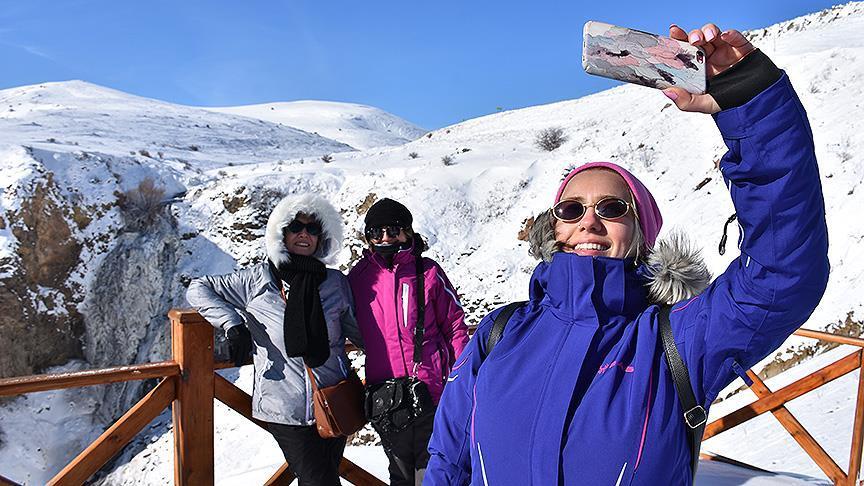 Bölge halkının "Su uçan" olarak adlandırdığı şelalenin, buzla kaplanmasıyla güzel görüntüler meydana geldi. Bazı vatandaşlar şelale önünde fotoğraf çektirdi.