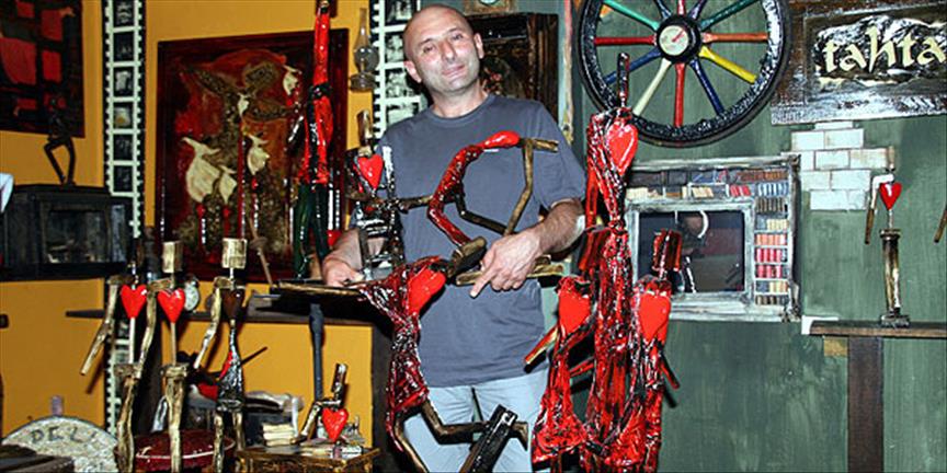 Samsunlu ahşap oymacısının Pinokyo'ya rakip olarak ürettiği 'Tahta Yürek'ler sergide tanıtılacak.
