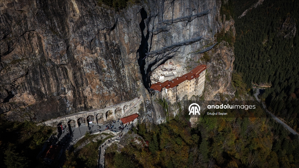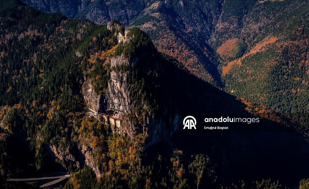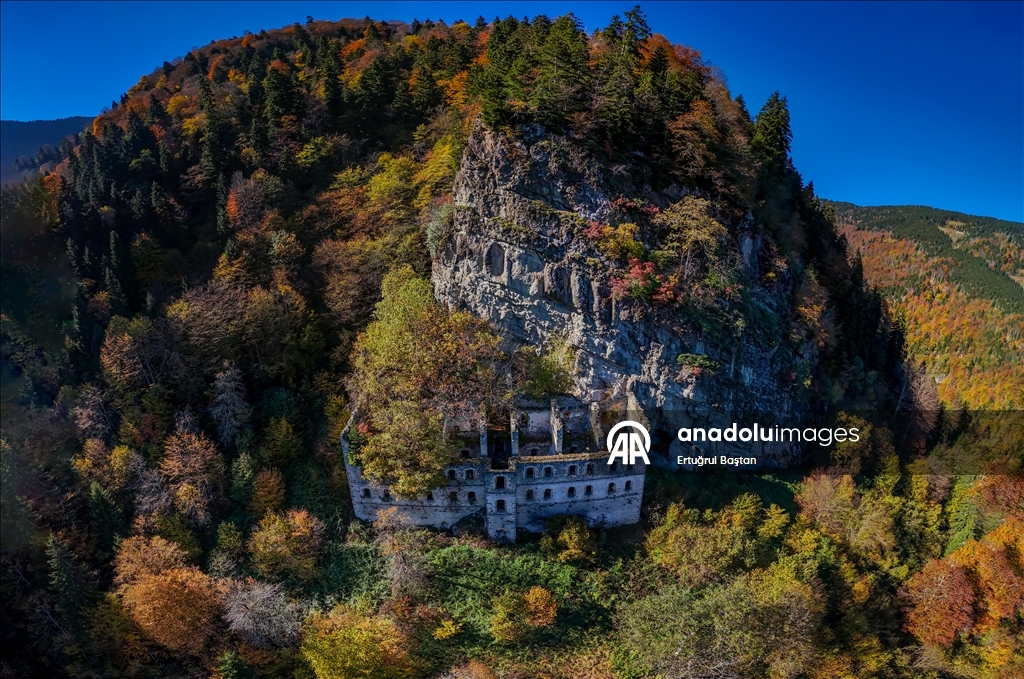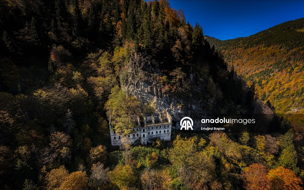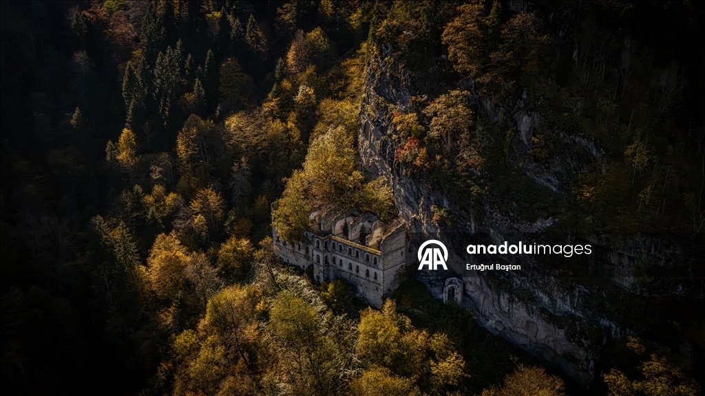 Trabzon'un Maçka ilçesindeki tarihi Sümela ve Vazelon manastırları sonbaharın tonlarına büründü.