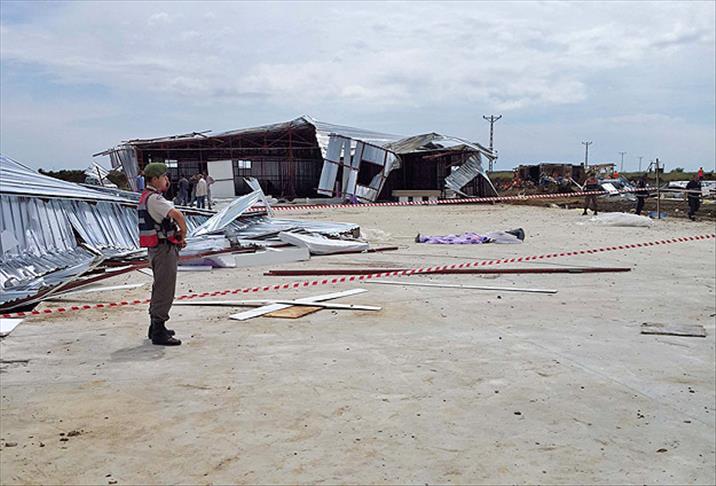 Tarsus Kaymakamı Orhan Şefik Güldibi, AA muhabirine yaptığı açıklamada, Yenice beldesinin Ballıca ve Çiçekli köyleri arasında yapımı süren havaalanının şantiyesinde, işçilere ait yemekhane ve yatakhanenin bulunduğu prefabrike binanın çatısının öğlen saatlerinde çıkan hortum nedeniyle uçtuğunu söyledi.