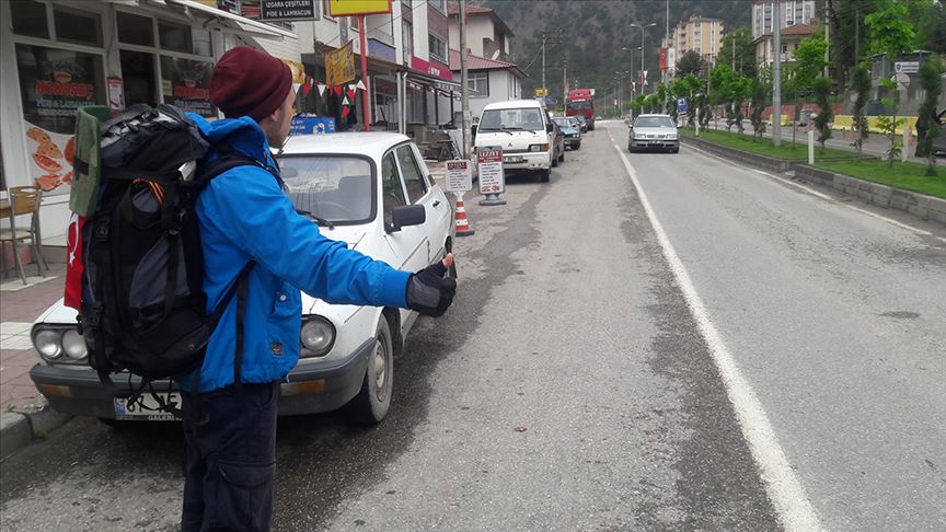 Otostopla Türkiye turu yapan Tataristanlı 20 yaşındaki üniversite öğrencisi Rodion Kadyrov, Kastamonu'nun Hanönü ilçesinde mola verdi.