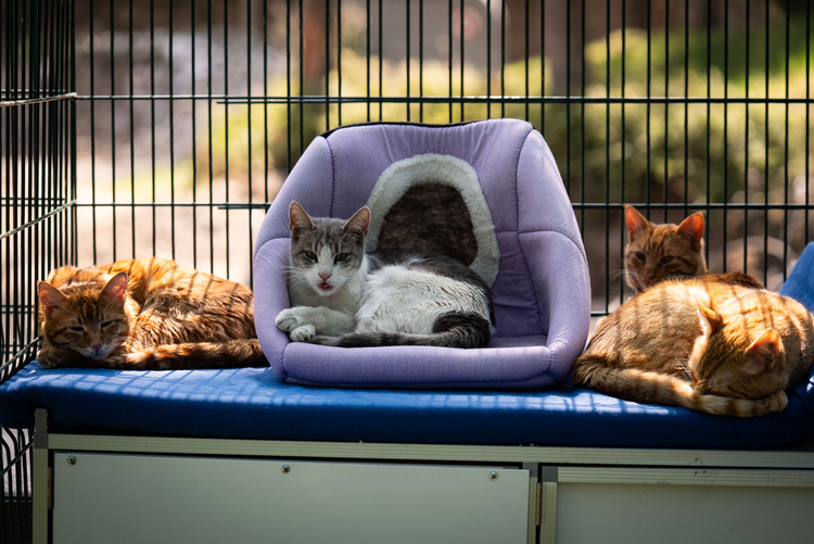 Yaşam alanındaki kedi evleri, ısı yalıtımlı ve zorlu hava koşullarına dayanıklı şekilde tasarlandı.