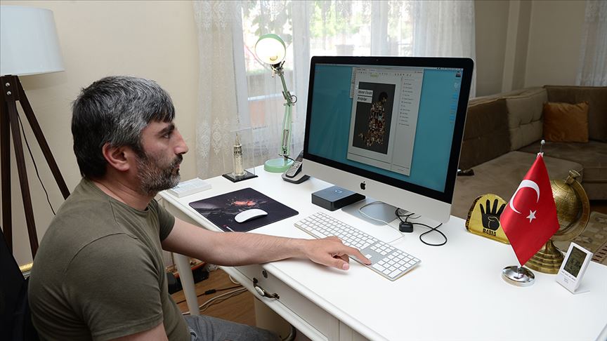Kullanabildiği tek eliyle bir grafikerin 30 dakikada çizdiği çalışmayı belki haftalar, aylar sonra bitirmek zorunda kalan Özcan, azmi ve kararlılığıyla çevresine örnek oluyor.