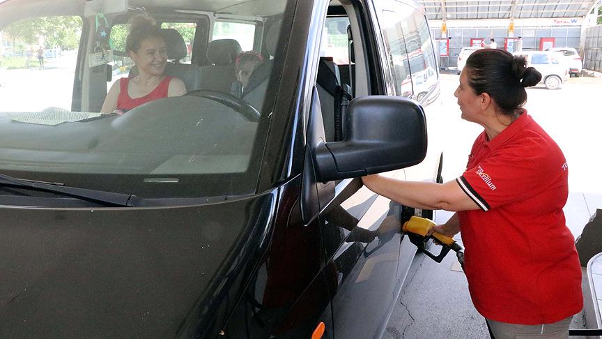 Edirne'deki bir akaryakıt istasyonunda 10 yıldır pompacılık yapan Hatice Derin, oğlunu okutabilmek için işine dört elle sarılıyor.