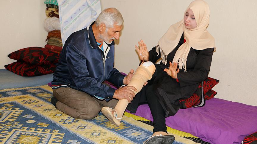 Kilis'te bir dernek tarafından ayağı için geçici bir protez takıldığını dile getiren Şami, protezin ayağına zarar verdiğini bu nedenle de her ay tedavi olması gerektiğini kaydetti.