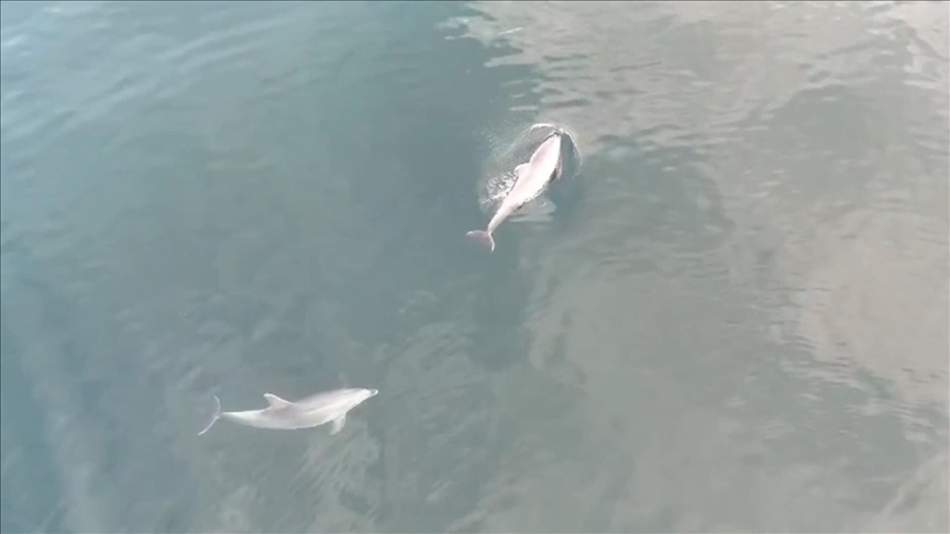 Anlık gelişmeler için AA Canlı Güzel, AA muhabirine, 3 yunusun denizde oynadığını görünce onları dronla görüntülemek istediğini söyledi.
