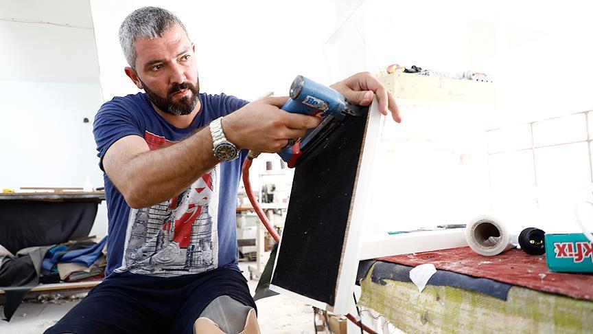 Yürümeyi, ayağa kalkmayı bir kez daha öğrenen Yunus Kayar, şimdi hem mobilyaları hem de hayatını şekillendiriyor.