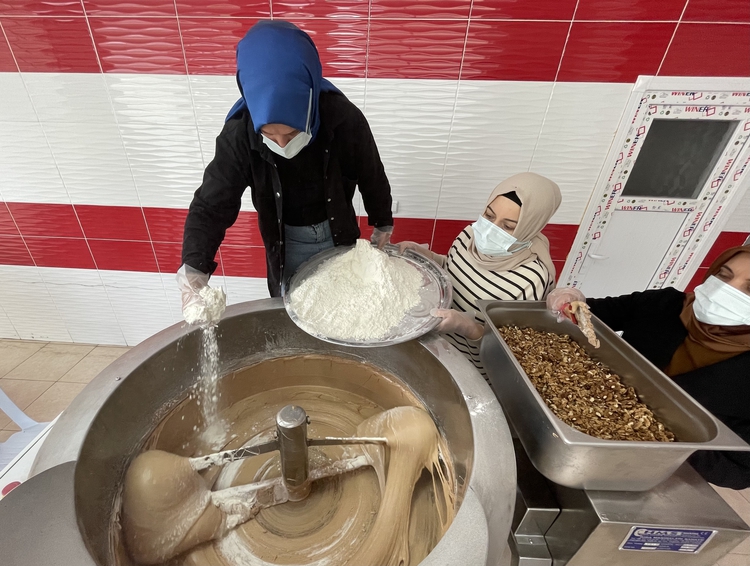 İki yıl önce 7 ev kadınının bir araya gelerek kurduğu Kabataş Kadın Girişimci Kooperatifi, helvanın üretimi için kolları sıvadı.