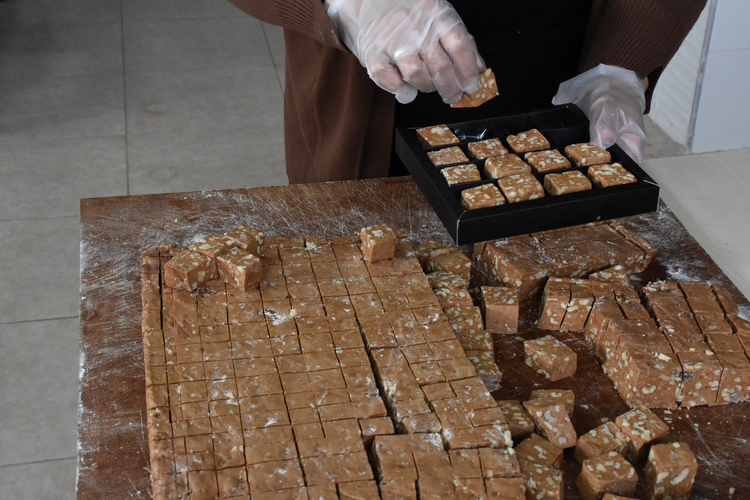 Aydın, tepsilere alınan helvanın, kesim ve paketleme işleminin ardından hazır hale getirildiğini kaydetti.