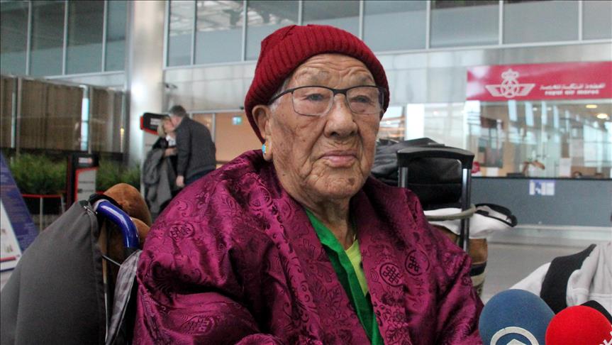 Türk Hava Yolları'nın (THY) 85 yıllık tarihinin en yaşlı misafiri Nepalli Ang Phurba Sherpini ile oğlu ve gelini, Nepal'in başkenti Katmandu'dan dün THY'nin tarifeli uçağıyla Türkiye'ye geldi.