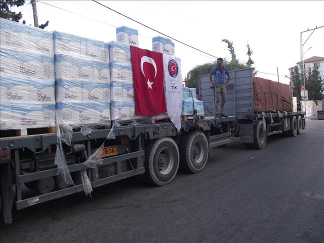 Hazırlanan yardım malzemeleri yüklemesi tamamlandıktan sonra İsrail'in Gazze sınırındaki Kerem Ebu Salim Sınır Kapısı'ndan geçerek Gazze'ye ulaştırılacak.