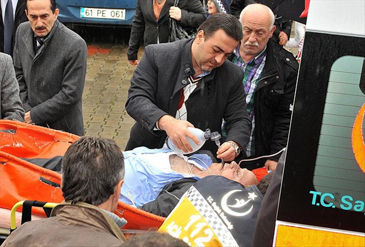 Beşikdüzü Spor Salonu'nda düzenlenen törende, saygı duruşu ve İstiklal Marşı için anons yapıldığı sırada, protokol tribününde bulunan Beşikdüzü Şehit Öğretmen Gürhan Yardım Ortaokulu öğretmeni Veysel Alan (56) fenalaşarak yere yığıldı.