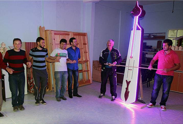 Karadenizli mobilya ustası Mustafa Kaya, 2,61 metre uzunluğunda elektronik kemençe yaptı.