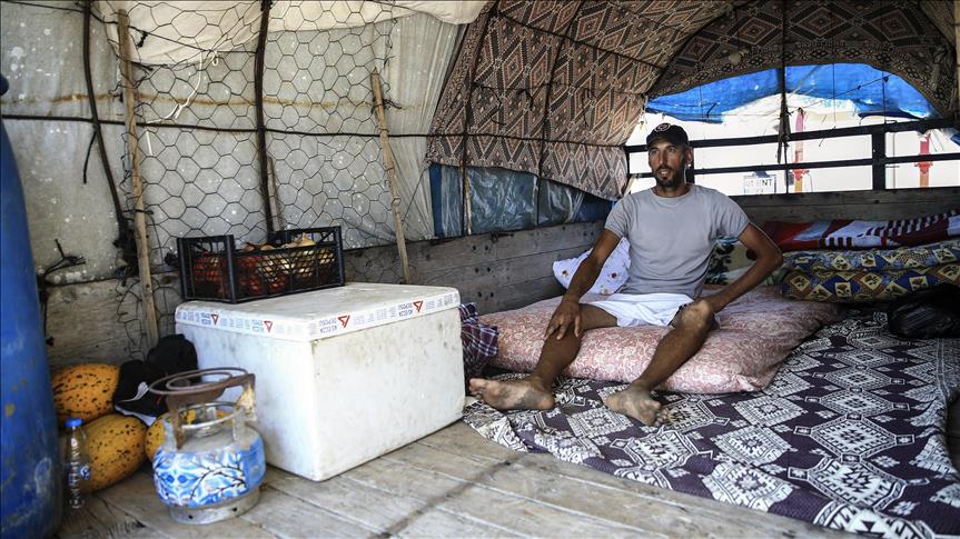 "Römorkun yanına bir de çardak yaptım. Yatak var, geceyi römorkta geçireceğim."