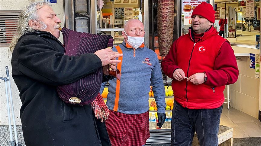 Taksim Meydanı'nın sessizliğini, tulumuyla "Çanakkale Türküsü"nü çalan ve söyleyen sanatçı Bahrettin Bıçakçı bozdu. Tüm dikkatleri üzerine toplayan Bıçakçı'ya yoldan geçen vatandaşlar ve esnaf da eşlik etti.