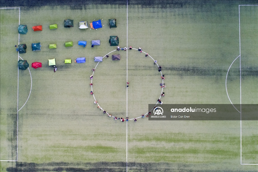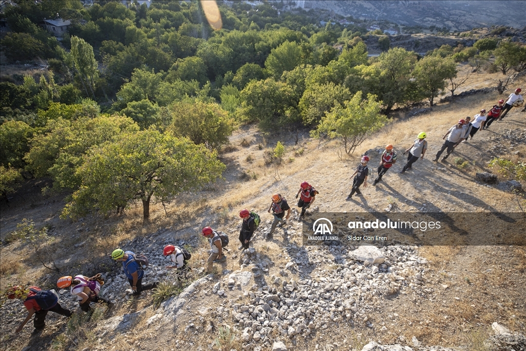 Kurdukları çadırlarda üç gün geçiren gönüllüler, gerekli bilgilendirmeler sonrası eğitmenleri ve ekip amirleri gözetiminde dağlık araziye tırmandı.
