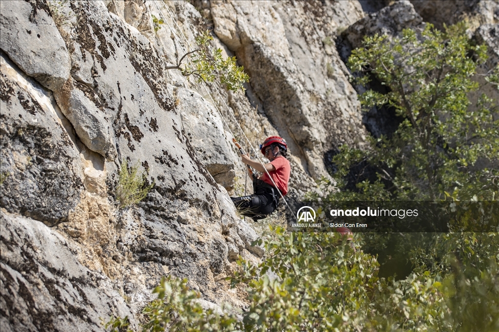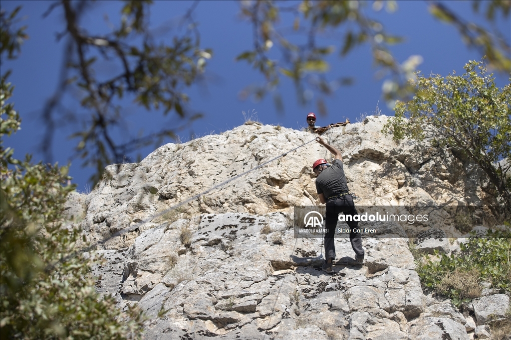 Zorlu geçen eğitimlerde gönüllüler, kaya alıştırması, üstten emniyetli kaya tırmanışı, havai hat kurma ve ipli erişim kaya inişi derslerini alarak yüksekten yaralı kurtarırken yapılması gerekenleri deneyimledi.