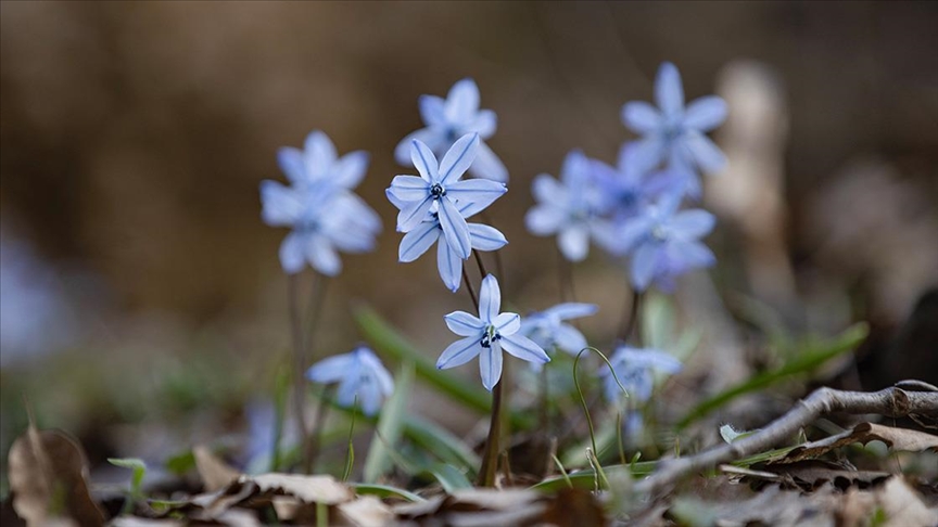 Anlık gelişmeler için AA Canlı İksor Vadisi'nde de karların erimesiyle ormanlık alanlarda bilimsel adı "Scilla siberica" olan mavi kardelenler açtı.