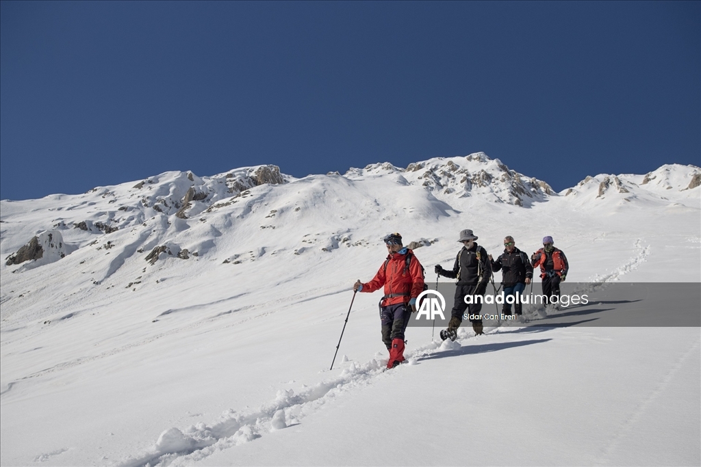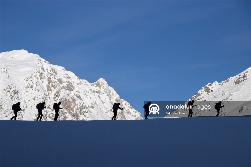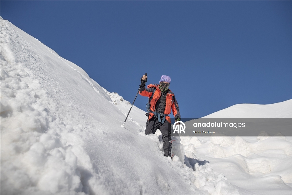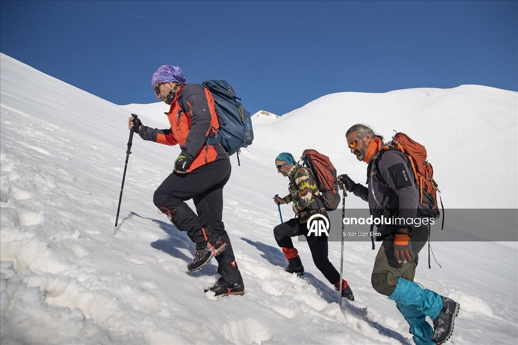 Tunceli'de dağcılar, kar kalınlığının 3 metreyi aştığı dağların zirvelerine zorlu tırmanışlar yaparak eşsiz manzaralarla karşılaşıyor.