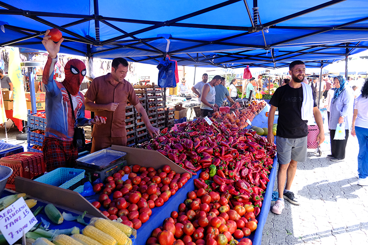 Koç, 40. durağı Kırklareli'nde ilk olarak halk pazarını gezdi, kendisini gören çocuk ve yetişkinler şaşkınlıklarını gizleyemedi. Çocuklar ve vatandaşlarla fotoğraf çektiren Koç, tezgahın başına geçerek tarhanalık biber satışı yaptı.