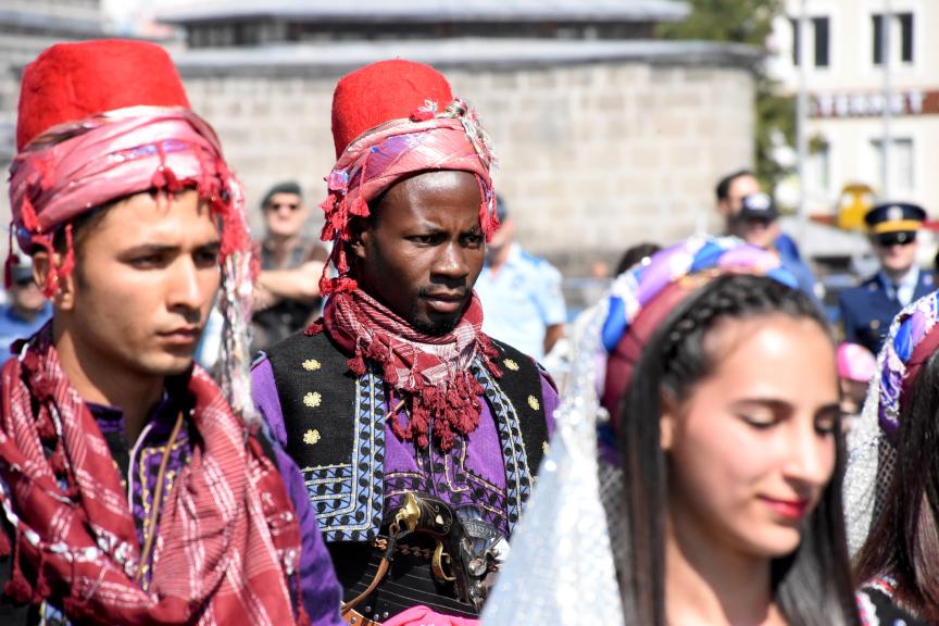 Kayseri'de düzenlenen törende efe kıyafetleriyle sahne alıp zeybek oynayan Ugandalı Abdülkerim Mugenzi, 30 Ağustos Zafer Bayramı coşkusuna ortak oldu.