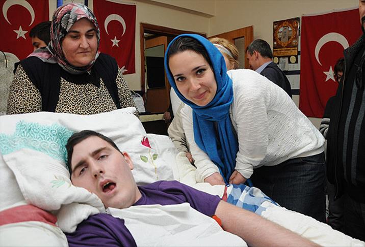 Rusya'da 3 yaşındayken elektrik çarpması sonucu iki kolunu dirseklerinden kaybeden ve Türk insanının engellilere olan yardımseverliği nedeniyle 4 ay önce Antalya'ya yerleşen 24 yaşındaki Alina, 5 yıldır Gülsüm Kabadayı'nın baktığı Umut'u ziyaret etti.